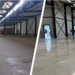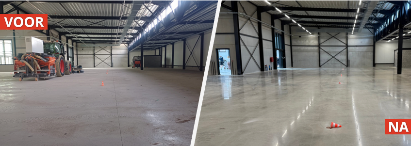 Met ons machinepark zijn wij in staat om grote oppervlaktes in een korte tijd tot een vlakke, vloeistofdichte en hoogglans gepolijste betonvloer te bewerken. Nadien kan deze onmiddellijk terug in gebruik genomen worden.